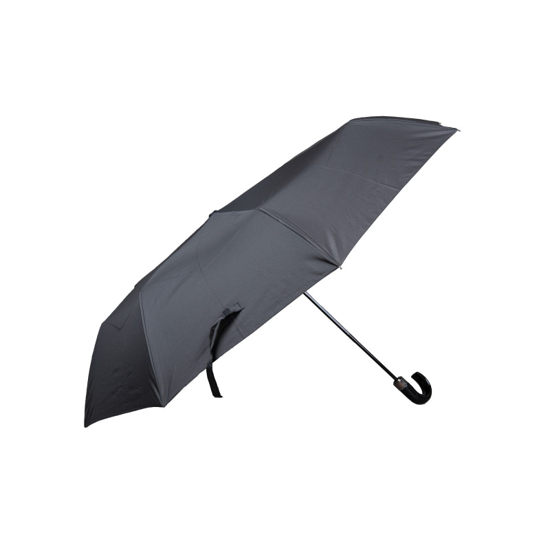 Paraguas, contra la lluvia y el sol. Mecanismo semi-automático, mini plegable en tres, tela de nylon 100% impermeable, color negro, 35 cms de largo cerrado, carpa de (28″) de radio. Medidas aproximadas.